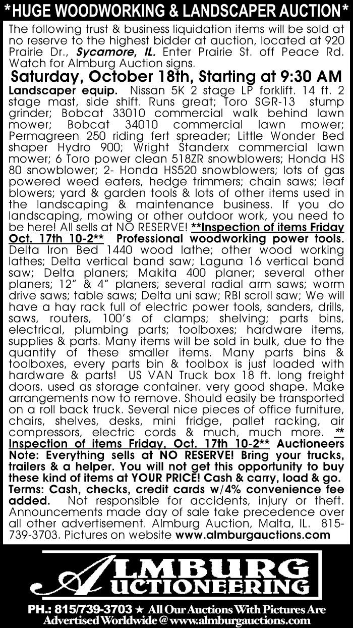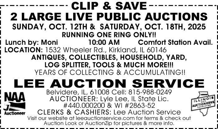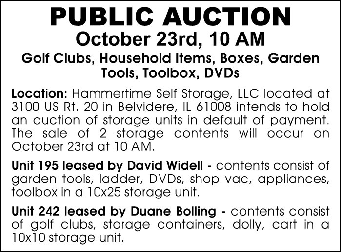 Auctions for the week of October 16th Lee Auction Service Almburg Auctioneering Irene Auction Company Hammertime Self Storage, LLC